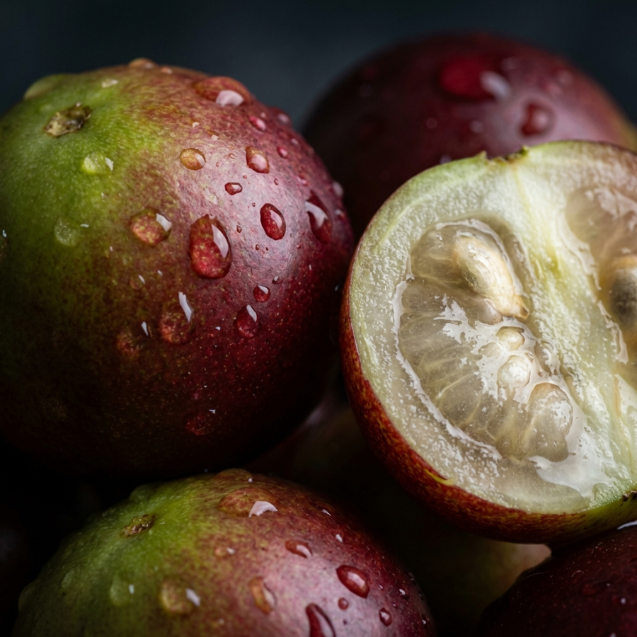 Camu Camu (Myrciaria dubia) rastie v zaplavovaných lesoch amazónskej panvy. Počas obdobia dažďov stromy stoja ponorené vo vode celé mesiace — a napriek tomu hojne plodí. Táto mimoriadna odolnosť sa odráža v nutričnej hustote plodu: akoby strom skoncentroval vitalitu celého dažďového pralesa do každého plodu veľkosti čerešne. Zber prebieha ručne z malých člnov, ktoré sa plavia zaplavenými lesmi, čo z neho robí jeden z najunikátnejších zberov na svete.