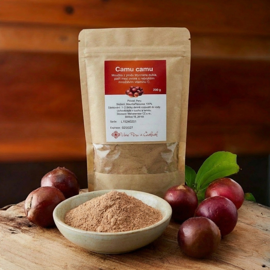 Camu Camu prášok pochádza z malého, žiarivo sfarbeného ovocia, ktoré rastie pozdĺž riek peruánskej Amazónie. Obsahuje jednu z najvyšších prirodzených koncentrácií vitamínu C spomedzi všetkých plodov na Zemi — až 60-krát viac než pomaranč. Domorodé komunity si ho po generácie cenia pre jeho osviežujúcu, jemne kyslú chuť a schopnosť podporovať vitalitu.